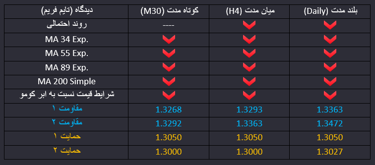 اخبار روز گذشته از بازار بریتانیا عدم تغییر در نرخ رشد سالانه دستمزد ها و افزایش مطالبات بیمه بیکاری بود، اما آنچه بیشترین تاثیر را بر بازار دیروز داشت اظهارات پاول رییس فدرال رزرو آمریکا در برابر سنا بود که با اعلام روند مثبت از اقتصاد آمریکا در زمینه بیکاری و تورم، به افزایش تدریجی نرخ بهره در ماه های آینده اشاره کرد و مجموع این اظهارات موجب رشد تقاضا برای دلار در برابر ارزهای دیگر گردید. امروز هم شاخص تورمی سالانه قیمت مصرف کننده بریتانیا ساعت 13 بوقت تهران اعلام میگردد و آقای پاول مجددا این بار در برابر کنگره گزارش اقتصادی خود را ارائه می دهد. از نظر تکنیکی قیمت نسبت به سطح بالای چنگال میان مدت واکنش برگشتی داشته و به موج نزولی بازگشته و در حال حاضر در نزدیکی سطوح حمایتی با اهمیت 1.3050 و 1.3 قرار دارد و واکنش قیمت در این محدوده با اهمیت است. در کوتاه مدت احتمال اصلاح قیمت در این محدوده وجود دارد و در میان مدت و بلند مدت احتمال اول ادامه روند نزولی با پایان اصلاح کوتاه مدت خواهد بود. هر چند باید توجه کرد که این سطح کف قیمتی از بیش از ده ماه گذشته محسوب می شود و احتمال اصلاح میان مدت دوباره در این محدوده وجود دارد و برای تثبیت عبور قیمت بهتر است تایید آن در تایم فریم های بالا مانند روزانه صورت گیرد تا حرکات هیجانی فیلتر شود.