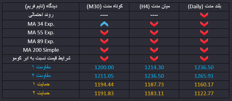 طلا، با وجود آنکه چین برنامه مذاکرات تجاری با آمریکا را کنسل کرد و شرایط تنش های تجاری تشدید شده است اما همچنان طلا درگیر محدوده 1200 دلاری است و در اطراف این محدوده با اهمیت در یک کانال افقی رنج شده و نتوانسته با اعتبار به یکی از کانال های 1100 یا 1200 دلاری ورود کند و روند خود را تثبیت نماید. در کوتاه مدت در واکنش به اخبار جنگ تجاری احتمال صعود قیمت وجود دارد اما در میان مدت واکنش قیمت نسبت به سطح بالا و پایین کانال افقی قیمت تعیین کننده خواهند بود و احتمال اول در بلند مدت نزول بیشتر قیمت خواهد بود.