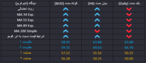 امیدواری به اجرای برنامه کاهش تولید نفت در کشورهای عضو اوپک و برخی تولید کنندگان بزرگ نفت از جمله عربستان موجب افزایش قیمت نفت در بازارهای بین المللی شده است. از طرف افزایش ذخایر نفت خام در آمریکا نیز متوقف شده و حتی رو به کاهش دارد و احتمال صعود قیمت نفت در میان مدت افزایش یافته است. در کوتاه مدت نیز احتمال اول ادامه روند صعودی است. قیمت در حال حاضر دو سطح مقاومتی میانگین 34 روزه و میانگین 200 در تایم فریم چهارساعته را شکسته و احتمال صعود قیمت در میان مدت افزایش یافته است.