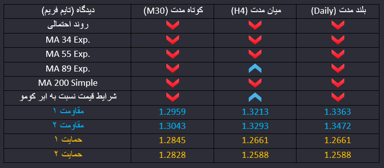 پوند به دلار، با توجه به صحبت های خانم ترزا می نخست وزیر بریتانیا و تاکید بر اینکه همه پرسی دیگری برای برگزیت انجام نخواهد شد و بریتانیا هر توافقی را نخواهد پذیرفت، تقاضا برای پوند کاهش یافت و بازار هفته را با یک گپ نزولی آغاز کرد. از نظر تکنیکی قیمت در میان مدت در یک کانال صعودی در حرکت بود که در حال حاضر به کف کانال رسیده و عبور معتبر از این محدوده به معنای احتمال بیشتر برای ادامه حرکت قیمت در موج نزولی است. در بلند مدت نیز قیمت به محدوده مقاومتی حاصل از عدد رند 1.3 و میانگین 55 روزه واکنش برگشتی داشته که می تواند پایانی بر حرکت اصلاحی میان مدت و بازگشت قیمت به موج نزولی باشد. در کوتاه مدت قیمت گپ مهمی ایجاد کرده و تمایل به نزول بیشتر در میان مدت وجود دارد که می تواند تا سطوح حمایتی 1.2845 و 1.2828 ادامه داشته باشد.