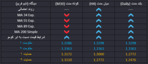 قیمت در شرایط اصلاح میان مدت در حرکت است و در محدوده بالای ابر کومو و میانگین 34 در تایم فریم چهارساعته رنج شده است. اخبار مرتبط با برگزیت مهمترین اخبار تاثیرگذار بر قیمت هستند و با توجه به اینکه اجتمال تعویق خروج بریتانیا از اتحادیه اروپا زیاد است، احتمال اول در میان مدت ادامه روند صعودی با پایان اصلاح قیمتی و زمانی خواهد بود.