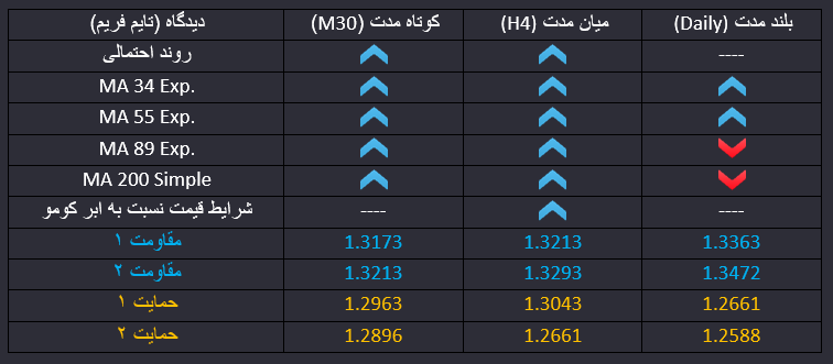 پوند به دلار، قیمت پس از اصلاحی کوتاه مدت و در حالی که شاخص خرده فروشی آمریکا نیز کمتر از حد انتظار ها اعلام شده و امیدواری ها به مذاکرات برگزیت زیاد است به موج صعودی بازگشته و احتمال اول در کوتاه مدت و میان مدت ادامه روند صعودی قیمت خواهد بود. امروز از بازار آمریکا و برتانیا خبر تقویمی با اهمیتی وجود ندارد و در کوتاه مدت نوسانات محدود صعودی انتظار می رود.