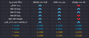 قیمت از ماه نوامبر سال گذشته در بالای محدوده حمایتی 1.1267 تا 1.13 در نوسان است و نتوانسته از این محدوده حمایتی عبور کند. بار دیگر قیمت با رسیدن به این محدوده واکنش برگشتی داشته است. در حال حاضر و در بلند مدت قیمت در آستانه عبور از سطح مقاومتی ابر کومو قرار دارد و در میان مدت نیز به محدوده بالای ابر کومو رسیده است و عبور از این محدوده می تواند انتظار برای افزایش قیمت در میان مدت را افزایش دهد.