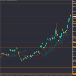 در بازار طلا، در ادامه شرایط ریسک گریزی در بازار های مالی، تقاضا برای طلا بعنوان ابزار و کالای حفظ ارزش افزایش یافته و قیمت از محدوده روانی و مهم 2000 دلاری عبور کرده و به بالاترین سطح در بیش از 19 ماه اخیر رسیده است. در حال حاضر و در کوتاه مدت قیمت در شرایط اصلاح کوتاه مدت و پولبک در حرکت است و در میان مدت احتمال اول همچنان ادامه روند صعودی با پایان پولبک خواهد بود.