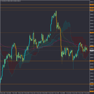در بازار طلا، قیمت در میانه روند صعودی و ابر کوموی میان مدت در تایم فریم چهارساعته، در شرایط اصلاح زمانی و قیمتی قرار گرفته
