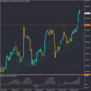در بازار طلا، قیمت پس از سه هفته نوسان در زیر مقاومت 1824 دلاری، از این محدوده به بالا عبور کرده و در میان مدت احتمال صعود قیمت طلا افزایش یافته است