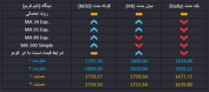 در بازار طلا، همانطور که از قبل گفته شده بود، با وجود آنکه روند میان مدت قیمت تمایل به صعود داشت، اما انتشار متن مذاکرت نشست پیشین فدرال رزرو آمریکا و تمایل برخی از اعضا به کاهش سیاست های انبساطی پولی، پیش از پایان سال جاری، موجب افزایش تقاضا برای دلار شده و همین موضوع بر روی قیمت طلا نیز تاثیرگذار بوده و قیمت نسبت به محدوده میانگین های میان مدت روزانه واکنش برگشتی داشته و در حال حاضر در زیر این محدوده در شرایط رنج در نوسان است و در میان مدت روند مشخصی را دنبال نمی کند و واکنش قیمت در این محدوده باید رصد شود.