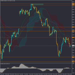 در بازار نفت وشاخص نفت برنت، افزایش ذخایر نفت خام در آمریکا و کاهش تقاضای صنعتی در چین موجب کاهش قیمت نفت شده است. قیمت پس از اصلاح شارپی تا محدوده 77 دلار برای هر بشکه افزایش داشت، که در ادامه نتوانست از این محدوده ماژور مقاومتی و ابر کوموی روزانه عبور کند و به موج نزولی بازگشته و احتمال نزول کوتاه مدت و میان مدت قیمت تقویت شده است.