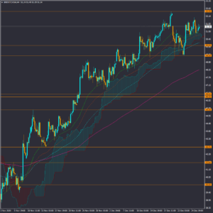 در بازار نفت و در شاخص نفت برنت، با وجود آنکه بزودی فاز اول افزایش عرضه توسط کشورهای عضو اوپک پلاس آغاز می شود، اما همچنان قیمت نفت در یک روند کم زاویه صعودی در حرکت است و احتمال اول در میان مدت ادامه روند صعودی خواهد بود. سطح مقاومتی 52.45 در برابر صعود قیمت قرار دارد.