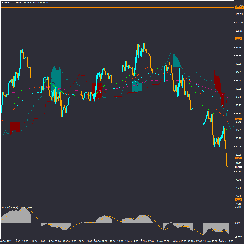 در بازار نفت و شاخص نفت برنت، با توجه به نا آرامی ها و اعتراضات در چین و همچنین افزایش موارد ابتلا به کووید 19 در این کشور، سطح تقاضای صنعتی سوخت و نفت خام کاهش داشته و قیمت سطح حمایتی ماژور 82 دلاری را با یک حرکت شارپی شکسته و در میان مدت احتمال نزول قیمت نفت خام افزایش یافته است. در کوتاه مدت احتمال حرکات اصلاحی و پولبک وجود دارد.
