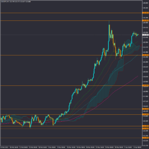 در برابری دلار به ین ژاپن، با توجه به واگرایی سیاست های پولی بانک مرکزی ژاپن و فدرال رزرو آمریکا، سطح تقاضای دلار نسبت به ین ژاپن همچنان صعودی است، و احتمال اول در میان مدت ادامه روند صعودی خواهد بود. محدوده های مقاومتی تاریخی و مهم 125.10 و 125.86 در برابر صعود بیشتر قیمت قرار دارند.