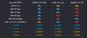 در برابری پوند به دلار، با توجه به جهش شاخص تورمی قیمت مصرف کننده آمریکا، روز گذشته قیمت در شرایط کوتاه مدت نزولی در حرکت بود، که با پایان اصلاح قیمت به موج صعودی بازگشته است. ضمن اینکه افزایش بیش از انتظار سطح شاخص تورمی سالانه در بریتانیا نیز از این روند حمایت کرده است و در کوتاه مدت احتمال اول ادامه موج صعودی خواهد بود. در میان مدت واکنش قیمت نسبت به محدوده مقاومتی ماژور 1.39 تعیین کننده است.