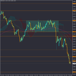 در برابری پوند به دلار، قیمت در ادامه روند نزولی، با افزایش تقاضا برای دلار، به پایین ترین سطح در 16 ماه اخیر رسیده و احتمال اول در میان مدت ادامه روند نزولی خواهد بود. سطح حمایتی ماژور 1.3 در برابری نزول بیشتر قیمت قرار دارد.