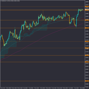 در برابری یورو به دلار، قیمت به محدوده سقف در بیش از شش ماه اخیر رسیده، و در این محدوده در شرایط رنج کوتاه مدت و اصلاح زمانی در نوسان است. از نظر تکنیکالی، واکنش قیمت نسبت به محدوده