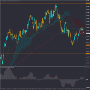 در برابری یورو به دلار، قیمت در میانه ابر کومو و میانگین های میان مدت در تایم فریم چهارساعته رنج شده است