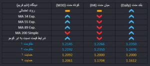 در برابری یورو به دلار، قیمت همچنان در بالای محدوده حمایتی ماژور 1.21 در نوسان است و در کوتاه مدت و میان مدت روند مشخصی را دنبال نمی کند