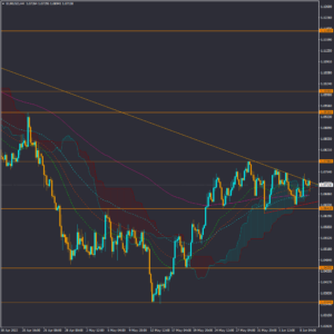 در برابری یورو به دلار، قیمت همچنان در محدوده خط روند نزولی میان مدت در نوسان است و در این محدوده تشکیل الگوی مثلث متقارن داده است و واکنش به محدوده های بالا و پایین مثلث تعیین کننده خواهد بود
