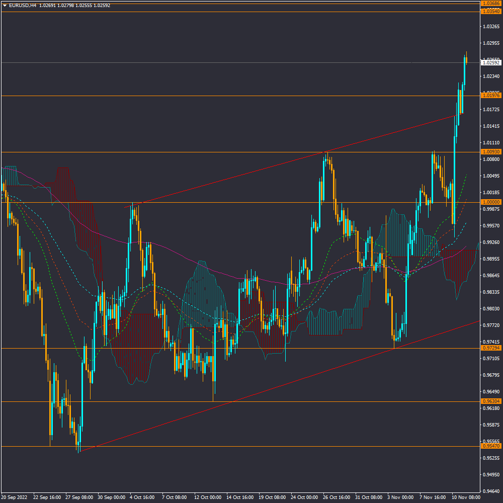 در برابری یورو به دلار، قیمت پس از نوسانات پر دامنه در محدوده برابری یورو به دلار، با اعتبار از این محدوده به بالا عبور کرده است، و با تثبیت این عبور، احتمال صعود میان مدت