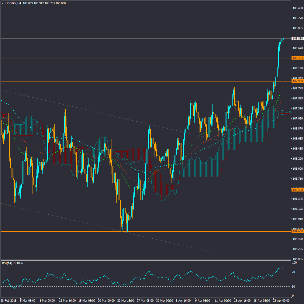 در جفت ارز دلار به ین، قیمت دو سطح مقاومتی 107.9 و 108.4 را با اعتبار شکسته و