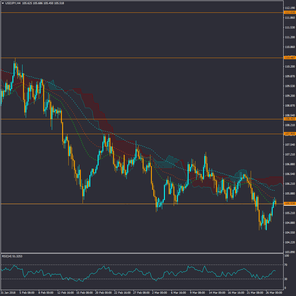 در جفت ارز دلار به ین، پس از عبور معتبر قیمت از محدوده حمایتی 105.53 ، قیمت در حال حاضر در شرایط اصلاح و پولبک نسبت به سطح شکسته شده قرار دارد و احتمال اول در میان مدت برگشت قیمت به موج اصلی نزولی خواهد بود. هر چند بطور کوتاه مدت بازار تحت تاثیر سفر احتمالی کیم جونگ اون به چین و مذاکرات وزرای خزانه داری آمریکا و چین با افزایش ریسک پذیری مواجه است.