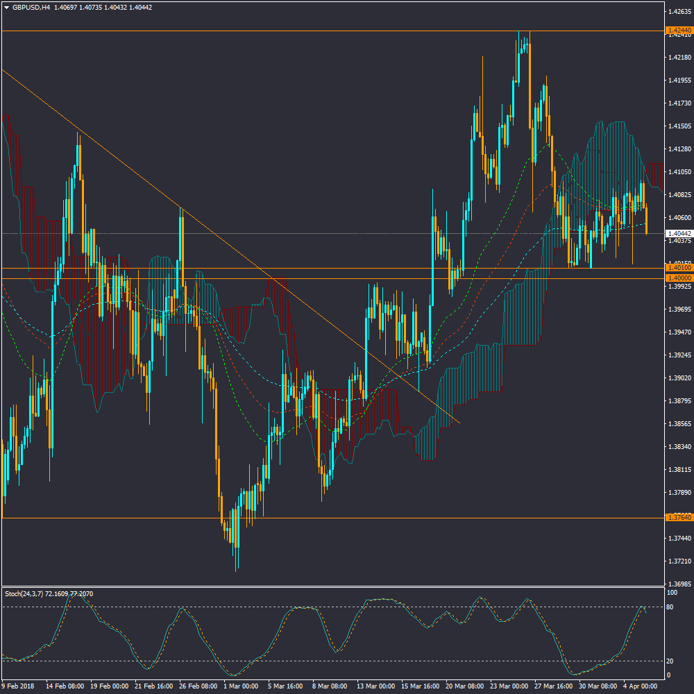 در جفت ارز پوند به دلار، روز گذشته شاخص مدیران خرید بخش ساخت و ساز بریتانیا آماری ضعیف تر از حد انتظار داشت و شاخص ADP از شرایط اشتغال در آمریکا بهتر از انتظار کارشناسان اعلام شد که احتمال اعلام NFP و شاخص اشتغال بهتر از حد انتظار در روز جمعه را افزایش داد. قیمت نیز همچنان در زیر سطح پایین ابر کومو در تایم فریم چهارساعته رنج شده و در کوتاه مدت احتمال نزول بیشتر قیمت به سمت حمایت 1.4 وجود دارد. در میان مدت واکنش قیمت نسبت به سطح با اهمیت 1.4 تعیین کننده خواهد بود.