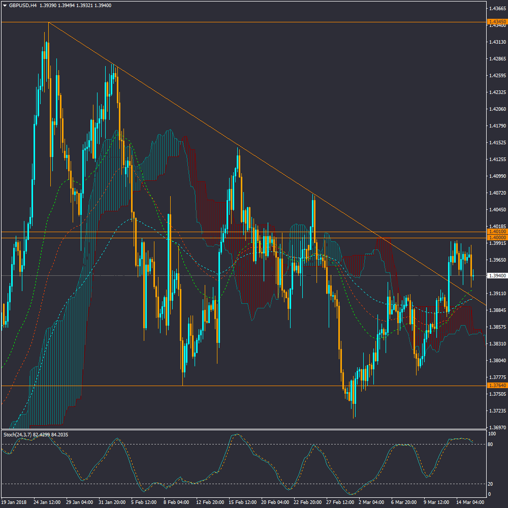 در جفت ارز پوند به دلار، قیمت در ادامه موج صعودی و پس از عبور معتبر از خط روند نزولی میان مدت ، در حال حاضر در شرایط اصلاح و پولبک کوتاه مدت در حرکت است و در کوتاه مدت احتمال ادامه پولبک وجود دارد و در میان مدت واکنش قیمت به محدوده برگشتی با اهمیت حاصل از خط روند نزولی شکسته شده و میانگین های میان مدت و ابرکومو در تایم فریم چهارساعته تعیین کننده است. با توجه به این موضوع که روند میان مدت صعودی است اما سطح مقاومتی رند 1.4 در برابر صعود بیشتر قیمت قرار دارد.