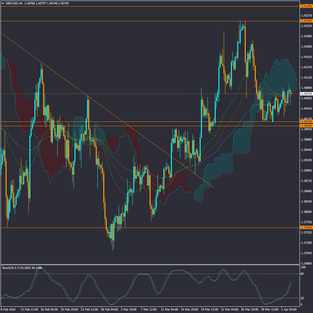 در جفت ارز پوند به دلار، قیمت همچنان در محدوده دارای پتانسیل برگشتی حاصل از ابر کومو و میانگین های میان مدت در تایم فریم چهارساعته با شیب کم