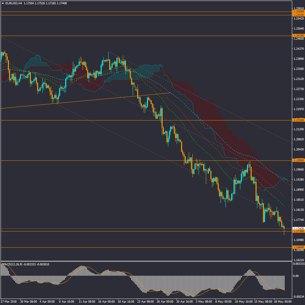 در جفت ارز یورو به دلار، در ادامه روند نزولی قیمت در آستانه شکست حمایت 1.1730 قرار دارد و