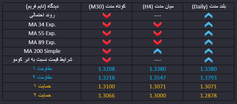 در حالی که هفته گذشته قیمت در شرایط صعود شارپی قرار داشت، از بعد از ظهر جمعه تقاضا برای دلار کاهش یافت، که یکی از عوامل اصلاح تقاضای هیجانی هفته و دیگری کاهش کمتر از حد انتظار در شاخص تورمی قیمت مصرف کننده آمریکا بود . قیمت در بلند مدت نتوانست از محدوده مقاومتی سطح 78.6 فیبوناچی موج ماژور حود با اعتبار عبور کند و احتمال اصلاح میان مدت یا کوتاه مدت در این محدوده قیمتی وجود دارد و پس از پایان اصلاح احتمال اول همچنان ادامه روند صعودی خواهد بود. در میان مدت نیز قیمت در شرایط اصلاحی در رحرکت است و احتمال اصلاح بیشتر قیمت تا محدوده 112 نیز وجود دارد اما در میان مدت احتمال اول ادامه روند صعودی با پایان اصلاح کوتاه مدت خواهد بود. در کوتاه مدت قیمت در محدوده میانگین های تایم 30 دقیقه و ابر کومو رنج شده است و احتمال نزول و اصلاح بیشتر تا سطح 112.20 وجود دارد.