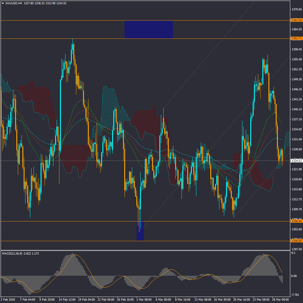 در نمودار طلا، هر آنچه احتمال جنگ تجاری میان آمریکا و چین کاهش می یابد و احتمال صلح در شبه جزیره کره افزایش می یابد، ریسک پذیری در بازار افزایش یافته و تقاضا برای طلا کم می شود. قیمت در یک روند شارپی و نزولی به محدوده با اهمیت حمایتی حاصل از سطح پایین چنگال اندروز و ابر کومو در تایم فریم چهارساعته رسیده است و واکنش قیمت نسبت به این محدوده تعیین کننده است. در کوتاه مدت احتمال اصلاح در این محدوده وجود دارد که با توجه به شارپی بودن نزول و احتمال تسویه در این محدوده محتمل تر است. در میان مدت احتمال اول ادامه نزول پس از پایان اصلاح خواهد بود.