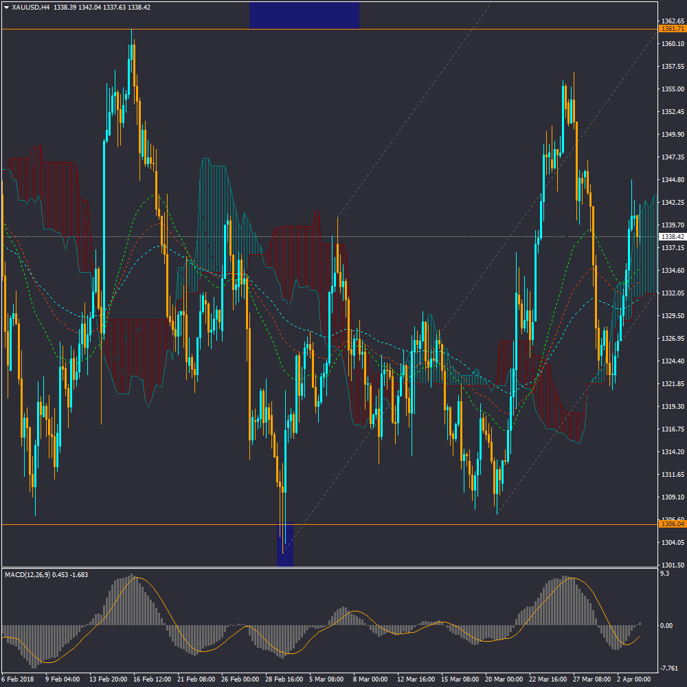 در نمودار طلا، چند خبر میزان ریسک پذیری بازار را کاهش داده و تقاضا برای طلا را افزایش داده است. اخبار مرتبط با اختلافات دولت آمریکا و شرکت آمازون، برنامه افزایش تعرفه های چین بر واردات آمریکا و همچنین اخبار جدید مبنی بر برنامه های موشکی کره شمالی در مجموع ریسک گریزی را در بازار افزایش داده اند و قیمت در واکنش به سطح پایین چنگال اندروز میان مدت به موج صعودی بازگشته و احتمال اول در میان مدت ادامه روند صعودی قیمت خواهد بود. در کوتاه مدت احتمال اصلاح و برگشت در محدوده سطح بالای ابر کومو در تایم فریم چهارساعته وجود دارد.