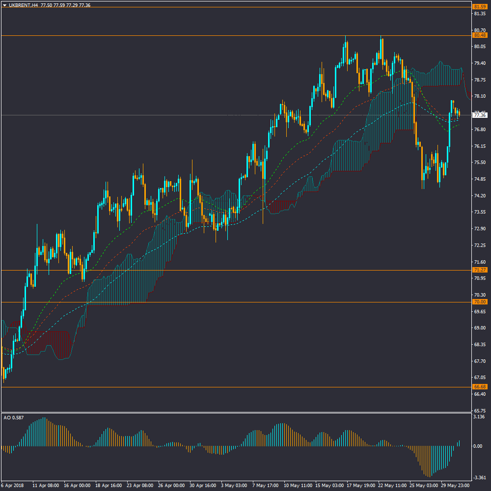 در نمودار نفت خام برنت، با توجه به تاکید اوپک بر ادامه برنامه کنترل سطح تولید در سال 2018، قیمت و تقاضا در بازار نفت افزایش داشته و احتمال اول در میان مدت ادامه افزایش قیمت تا محدوده 80 دلاری خواهد بود. در کوتاه مدت بدلیل افزایش شارپی روز گذشته احتمال اصلاح قیمتی و زمانی وجود دارد. امروز تغییرات موجودی ذخایر نفت خام آمریکا اعلام میگردد، که می تواند بر روند عرضه و تقاضای نفت تاثیرگذار باشد.