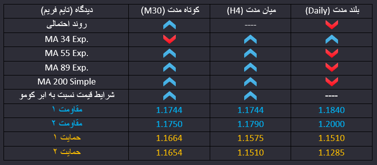 در یورو به دلار، روز گذشته در دیدار ترامپ و یونکر توافقات مهمی درباره آینده تجارت و بخصوص درباره تعرفه خودرو میان اروپا و آمریکا صورت گرفت، که موجب افزایش تقاضا برای یورو در بازارهای بین المللی گردید. امروز هم ساعت 16:15 بوقت تهران شورای سیاستگذاری پولی بانک مرکزی اروپا نتایج نشست خود درباره حداقل نرخ بهره را اعلام میکند و پس از آن ساعت 17 بوقت تهران آقای ماریو دراگی رییس این بانک کنفرانس خبری خواهد داشت. هر چند احتمال تغییر در نرخ های بهره اروپا تقریبا صفر است، اما صحبت های ماریو دراگی می تواند بر روند قیمت تاثیرگذار باشد. در حال حاضر و پس از یک موج صعودی، قیمت به مقاومت ماژور میان مدت 1.1744 رسیده و نسبت به آن واکنش برگشتی داشته است و در کوتاه مدت احتمال اصلاح بیشتر قیمت در این محدوده وجود دارد. هر چند در همان کوتاه مدت نیز نگاه بازار به صحبت های دراگی خواهد بود. در میان مدت قیمت همچنان روند مشخصی نیافته و واکنش قیمت نسبت به مقاومت 1.1744 تعیین کننده است. در بلند مدت نیز قیمت در شرایط اصلاح زمانی و قیمتی قرار دارد و همچنان احتمال اول بازگشت قیمت به موج نزولی با پایان اصلاح خواهد بود.