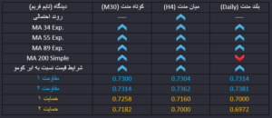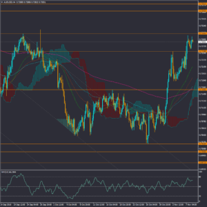 دلار استرالیا به دلار ، قیمت پس از یک پولبک کوتاه مدت، دوباره به موج صعودی بازگشته است و احتمال اول در میان مدت ادامه روند صعودی است. هر چند سطوح ماژور مقاومتی 0.73 و 0.7362 و 0.7381 در برابر صعود قیمت قرار دارند و واکنش قیمت نسبت به این سطوح دارای اهمیت خواهد بود. در بلند مدت قیمت از محدوده ابر کوموی روزانه عبور کرده است و احتمال صعود بلند مدت قیمت نیز افزایش یافته است.