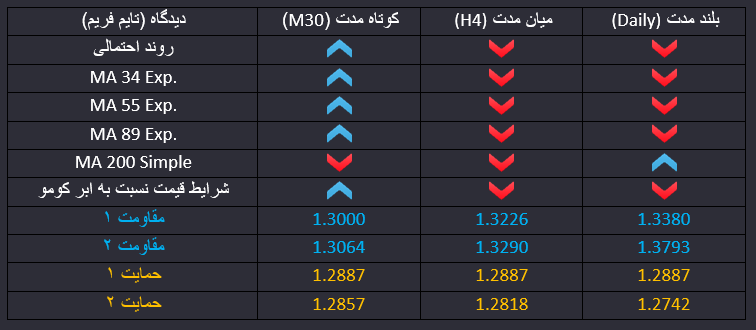 دلار به دلار کانادا، با رسیدن قیمت به سطح حمایت ماژور 1.2887، قیمت در شرایط اصلاحی در حرکت است و با توجه به موج نزولی شارپی قبلی ، احتمال اصلاح بیشتر در کوتاه مدت وجود دارد اما روند نزولی میان مدت قیمت و احتمال توافق نزدیک در پیمان تجاری میان آمریکا و کانادا، باعث شده که احتمال نزول در میان مدت همچنان پابرجا باشد . ضمن اینکه افزایش قیمت نفت می تواند برای افزایش تقاضا برای دلار کانادا نیز تاثیرگذار باشد. در بلند مدت و میان مدت احتمال اول بازگشت قیمت به موج نزولی با پایان اصلاح کوتاه مدت خواهد بود اما واکنش قیمت نسبت به سطح ماژور 1.2887 تعیین کننده خواهد بود. در کوتاه مدت احتمال اصلاح و صعود بیشتر وجود دارد اما قیمت به میانگین 200 در تایم فریم سی دقیقه رسیده و واکنش قیمت نسبت به این میانگین مهم است.