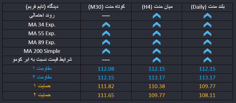 دلار به ین، در ادامه روند صعودی قیمت به مقاومتی ماژور 112.15 رسیده و نسبت به آن واکنش برگشتی داشته است. با توجه به