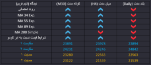 بازگشت جو ریسک پذیری به بازار موجب افزایش تقاضا برای سهام ها در بورس نیویورک شده است و قیمت سطوح مقاومتی مهمی را در میان مدت شکسته و هر چند در بلند مدت همچنان احتمال اول ادامه روند نزولی است، اما این روند اصلاحی می تواند در میان مدت ادامه داشته باشد. سطوح مقاومتی تغییر قطب یافته 24000 و 24246 در برابر صعود بیشتر شاخص هستند. در آخرین معاملات بازار سهام، بجز مرک و کوکاکولا ، بقیه سهام ها در محدوده مثبت و یا نزدیک به صفر معامله شدند و احتمال صعود و اصلاح میان مدت در روزهای پیش رو افزایش یافته است.