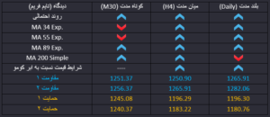 در آستانه اعلام نتایج نشست کمیته بازار باز فدرال رزرو آمریکا، قیمت طلا همچنان روند صعودی دارد اما با رسیدن به محدوده مقاومتی ماژور 1250 دلاری، قیمت در کوتاه مدت واکنشی اصلاحی داشته و نتوانسته از این محدوده با اعتبار عبور کند ولی همچنان در میان مدت احتمال اول ادامه روند صعودی با پایان اصلاح خواهد بود. عبور قیمت از این محدوده به معنای افزایش احتمال صعود قیمت طلا در میان مدت و بلند مدت خواهد بود.