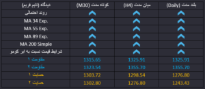 در شرایطی که بازار در انتظار نتایج مذاکرات تجاری میان آمریکا و چین است، قیمت طلا در شرایط اصلاحی و رنج قرار گرفته و در ابر کوموی میان مدت تایم فریم چهارساعته رنج شده است و خروج قیمت در هر جهت می تواند در تعیین روند میان مدت قیمت با اهمیت باشد. قیمت در حال حاضر در نزدیکی خط روند میان مدت صعودی قرار دارد و احتمال اول ادامه روند صعودی در میان مدت خواهد بود. اخبار امروز از شاخص تورمی قیمت مصرف کننده آمریکا نیز بر روند کوتاه مدت و میان مدت قیمت تاثیرگذار باشد.