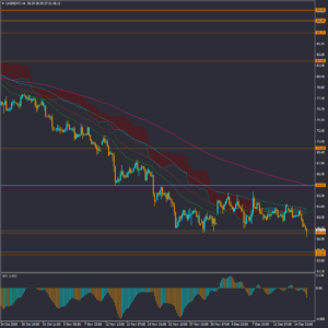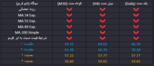 با پایان اصلاح قیمتی، قیمت نفت دوباره به موج نزولی بازگشته و احتمال نزول بیشتر در میان مدت را افزایش داده است. در حال حاضر قیمت به حمایت ماژور 57.77 رسیده و نتوانسته از این محدوده با اعتبار عبور کند و اما توانسته کمترین قیمت نفت در بیش از 13 ماه اخیر را ثبت کند که کمترین قیمت در سال جاری میلادی هم هست. در کوتاه مدت احتمال اصلاح در این محدوده وجود دارد، اما در میان مدت احتمال اول همچنان ادامه روند نزولی است.