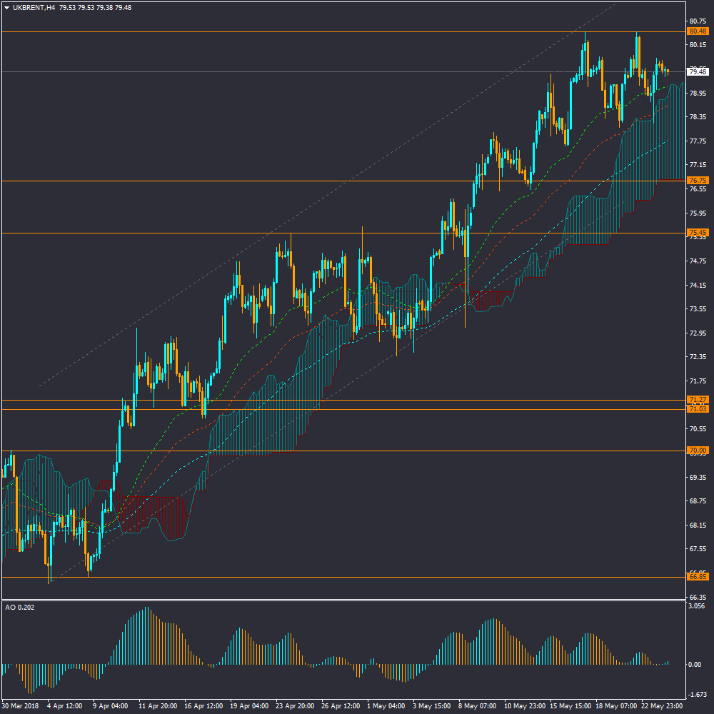 در نمودار نفت خام برنت، قیمت با رسیدن به اوج سه سال و نیمه در شرایط اصلاحی در حرکت است و در کوتاه مدت احتمال اصلاح بیشتر تا 78 دلار نیز وجود دارد. روز چهارشنبه هم آمار بیشتر از حد انتظاری از ذخایر نفت خام آمریکا اعلام شد، که نشان می داد این ذخایر در هفته گذشته 5 میلیون و هشتصد هزار بشکه افزایش داشته اند، که این موضوع موجب اصلاح بیشتر قیمت نفت در بازارهای بین المللی گردید. در میان مدت احتمال اصلاح بیشتر قیمت تا محدوده 76.5 دلاری وجود دارد.