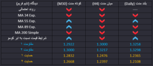 امیدواری به توافق میان دولت و پارلمان بریتانیا بر سر پیش نیازهای خروج با توافق از اتحادیه اروپا که مهمترین آنها مساله مرزهای ایرلند و قوانین گمرکی است، موجب شد که تقاضا برای پوند تا حدودی افزایش یابد و در شرایط اصلاح کوتاه مدت قرار گیرد اما قیمت در حال حاضر به محدوده برگشتی حاصل از میانگین های میان مدت رسیده و احتمال برگشت قیمت از این محدوده وجود دارد و احتمال اول در میان مدت ادامه روند نزولی قیمت خواهد بود. امروز شاخص تورمی قیمت مصرف کننده در بریتانیا و آمریکا اعلام میشود که می تواند بر روند قیمت تاثیرگذار باشد.