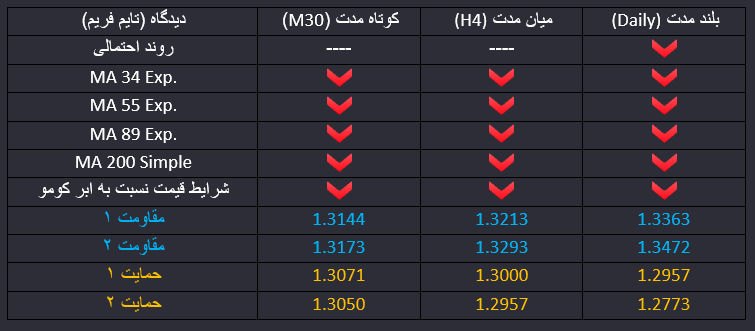 پوند به دلار، روز گذشته نتایج نشست فدرال رزرو آمریکا اعلام شد که تغییر مهمی در سیاست های پولی ایجاد نشد اما بعد از ظهر دیروز آمار بررسی اتوماتیک اشتغال آمریکا نشان میداد که 219 هزار فرصت شغلی جدید در ماه گذشته ایجاد شده که بالاتر از انتظار ها بود و حالا انتظار بازار از شاخص با اهمیت NFP نیز تغییر کرده است. امروز هم نشست مهم بانک مرکزی بریتانیا برگزار و نتایج آن اعلام میشود که محتمل است نرخ بهره افزایش پیدا کند که در اینصورت احتمال افزایش تقاضا برای پوند بریتانیا وجود دارد. بازار در حال حاضر به این افزایش مطمئن نشده و همین موضوع می تواند تاثیرپذیری نتایج را افزایش دهد. ساعت 16 بوقت تهران هم مارک کارنی رییس بانک مرکزی بریتانیا سخنرانی خواهد داشت. اما از نظر تکنیکی با افزایش تقاضا برای دلار آمریکا، قیمت سطح پایین الگوی مثلث را شکسته و احتمال نزول در میان مدت افزایش یافته است هر چند اخبار مرتبط با سیاست های پولی و نرخ بهره از بریتانیا می تواند این روند را تغییر دهد. در بلند مدت نیز احتمال اول ادامه روند نزولی خواهد بود. در کوتاه مدت قیمت سطوح حمایتی از جمله میانگین ها و ابر کومو را در تایم فریم سی دقیقه شکسته است و حرکت شارپی نزولی داشته است. از نظر تکنیکی روند کوتاه مدت نزولی است اما احتمال صعود کوتاه مدت و اصلاح بخشی از حرکت شارپی قیمت وجود دارد ضمن اینکه افزایش نرخ بهره هم می تواند در کوتاه مدت روند قیمت را تغییر دهد.