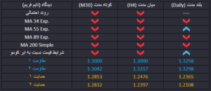 قیمت با شکست حمایت ماژور 1.3 و پس از پولبک نسبت به سطح شکسته شده به موج نزولی بازگشته و احتمال اول در میان مدت ادامه روند نزولی قیمت خواهد بود. سطح ماژور بعدی پیش روی قیمت در محدوده 1.25 قرار دارد. در بلند مدت اما قیمت به محدوده میانگین های میان مدت روزانه رسیده و واکنش قیمت نسبت به این محدوده حمایتی با اهمیت است. عبور از این محدوده به معنای احتمال بیشتر برای نزول میان مدت قیمت خواهد بود. ضمن اینکه امروز آمار کمتر از انتظاری برای تولید ناخالص داخلی بریتانیا اعلام شد که عرضه پوند را در بازار تقویت کرده است و همچنان اخبار مرتبط با برگزیت می تواند برای روند قیمت تعیین کننده باشد.