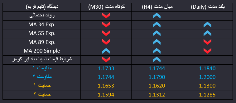 یورو به دلار، درخواست ایتالیا از بانک مرکزی اروپا برای تعریف و اجرای یک برنامه جدید تسهیل پولی موجب کاهش تقاضا برای یورو شده است و در حالی که قیمت در یک روند صعودی میان مدت در حرکت است ، در شرایط اصلاحی قرار گرفته که می تواند پایان روند صعودی میان مدت باشد. قیمت در بلند مدت به PRZ مهمی حاصل از اصلاح 38.2 فیبو موج ماژور روزانه، سطح بالای ابر کومو و میانگین 89 روزه رسیده و احتمال پایان اصلاح میان مدت در این محدوده وجود دارد. در حال حاضر دو سناریو که در بلند مدت باید مورد توجه قرار گیرد، یکی پایان برنامه های تسهیلی QE اروپا در ماه دسامبر 2018 است، که می تواند روند بلند مدت قیمت را به صعودی تغییر دهد و سناریوی مشکلات اقتصادی کشورهای صنعتی عضو از جمله ایتالیاست که هنوز نیاز به حمایت های پولی و مالی از جانب بانک مرکزی دارند. ضمن اینکه خروج نرم بریتانیا نیز می تواند خبر مثبتی برای یورو باشد. در میان مدت و در حال حاضر در شرایط لب شمشیری تکنیکال قرار داریم و واکنش به PRZ بلند مدت پیش رو می تواند جوابی برای روند میان مدت قیمت باشد. در کوتاه مدت احتمال اول نزول قیمت تا محدوده های حمایتی 1.6630 و 1.1594 است.