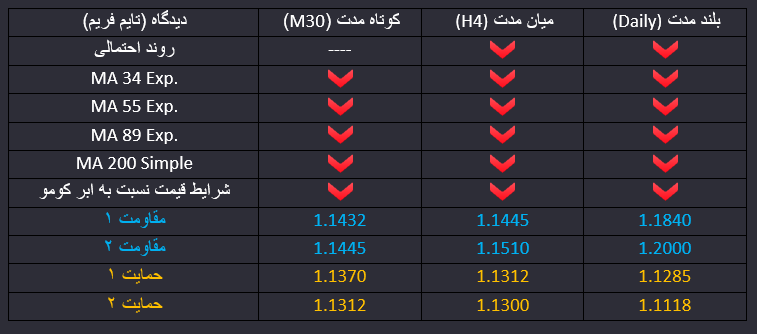 یورو به دلار، پس از یک ریزش شارپی در یورو در پی هراس سرمایه گذاران از تاثیر ریزش لیر ترکیه بر واحد پول مشترک اروپایی، در حال حاضر قیمت در شرایط اصلاحی در حرکت است . به سمت حمایت شکسته شده 1.1445 اصلاح و پولبک داشته است. در کوتاه مدت احتمال اصلاح بیشتر قیمت تا این محدوده وجود دارد و در میان مدت احتمال اول بازگشت به موج نزولی با پایان حرکت اصلاحی خواهد بود. سطوح مقاومتی 1.1432، 1.1445 و 1.1482 در برابر اصلاح و صعود بیشتر قیمت در کوتاه مدت قرزار دارند.سطح 1.1432 در کوتاه مدت مقاومت ماژور محسوب میگردد. در بلند مدت نیز همچنان احتمال اول ادامه روند نزولی است.