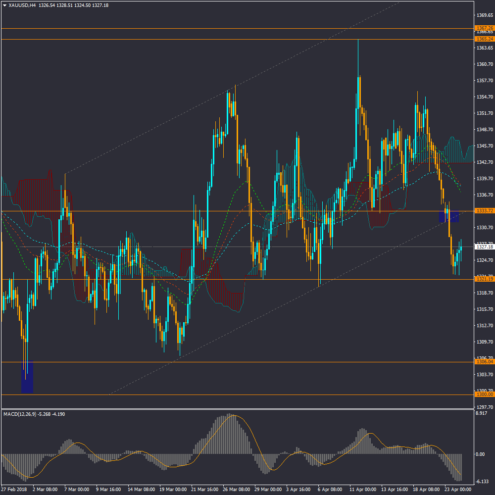 در نمودار طلا، با توجه به کاهش قابل توجه تنش ها در شبه جزیره کره و احتمال تغییرات اساسی در روابط دو کره و آمریکا و همچنین افزایش تقاضا برای دلار در بازارهای بین المللی، قیمت روندی نزولی یافته و از حمایت 1333 دلاری عبور کرده است و با رسیدن به سطح حمایتی 1321 دلاری نسبت به آن واکنش اصلاحی و برگشتی داشته است که احتمال دارد در کوتاه مدت ادامه یابد. در میان مدت اما احتمال اول همچنان ادامه روند نزولی با پایان اصلاح خواهد بود. در بلند مدت نیز قیمت به محدوده حمایتی حاصل از ابر کومو و میانگین 89 روزه رسیده است.