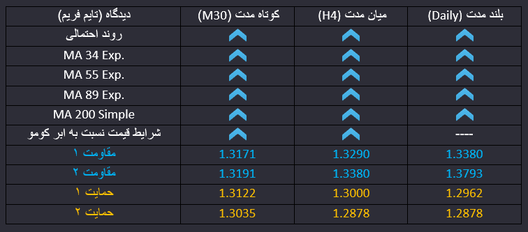 دلار به دلار کانادا، بروز موانع در مذاکرات نفتا و تهدید ترامپ بر علیه واردات کانادا، تقاضا برای دلار کانادا را کاهش داده است. این در حالی است که روز جمعه آمار مثبتی از شرایط اشتغال و بیکاری کانادا منتشر شد، اما در حال حاضر توجه معامله گران به مذاکرات نفتا معطوف است. در حال حاضر و در بلند مدت قیمت به خط روند بلند مدت صعودی رسیده و نسبت به آن واکنش برگشتی معتبری داشته که به معنای احتمال بیشتر برای صعود بلند مدت قیمت است. در میان مدت هم قیمت چنگال اندروز نزولی و میانگین ها و ابر کومو در تایم فریم چهارساعته را شکسته و روند میان مدت قیمت تغییر یافته و احتمال اول ادامه صعود قیمت است. سطوح ماژور 1.3290 و 1.3380 در برابر صعود بیشتر قیمت قرار دارند. در کوتاه مدت قیمت در بالای سطوح مقاومتی و میانگین ها قرار گرفته و احتمال اول ادامه روند صعودی قیمت در کوتاه مدت خواهد بود. سطح مقاومتی 1.3191 در برابر صعود قیمت در کوتاه مدت قرار دارد.