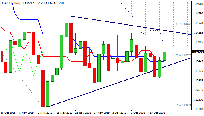 Daily cloud marks strong resistance which already capped recovery attempts and sustained break here would generate bullish signal for test of next key barrier at 1.1444 (Fibo 38.2% of 1.1815/1.1215 / 10 Dec spike high).