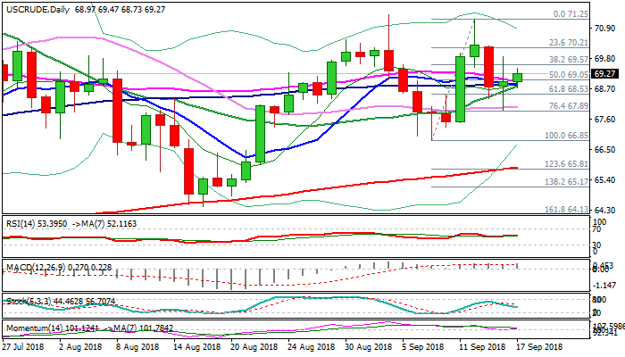 Fresh recovery attempts after last Thursday’s strong fall and Friday’s long-legged Doji, signal formation of reversal pattern on daily chart.